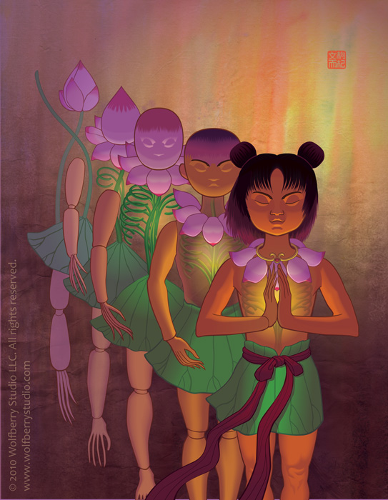 Nezha is a deity in East Asian Buddhism and Taoism. He originated as Nalakuvara / Natakuvera in Hindu and Buddhist literature but the deity evolved a completely different backstory after coming to China.